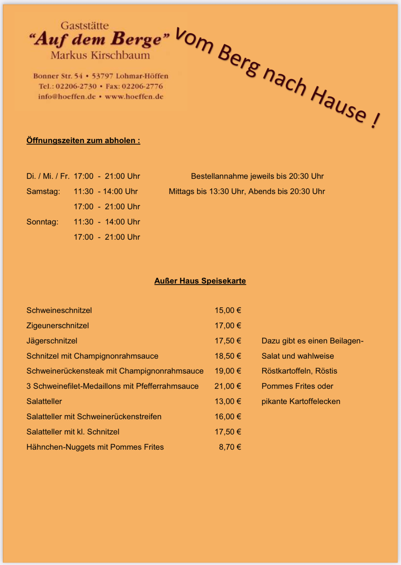 Weiterhin bieten wir unseren Außer-Haus-Verkauf an.